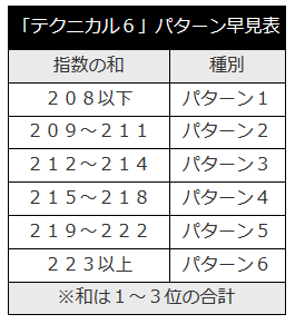 テクニカル6は、コンピ指数1~3位の指数値3つを足し算して、