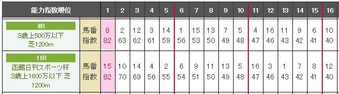 どちらもコンピ1位の指数値が「82」と同じ。