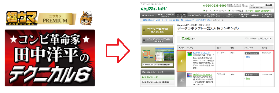 そしてターゲットとは『TARGET frontier JV』というデータベースソフトのことで、JRA-VANの有料会員サービス「Data Lab.」の中で、ソフト人気ランキングで常に1位をキープし続ける、データ競馬の「絶対王者」です。