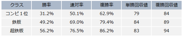 次に超鉄板コンピになると、連対率は77%までハネ上がります。