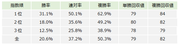 コンピ指数順位は当日の人気順位とほぼ同じになることから、