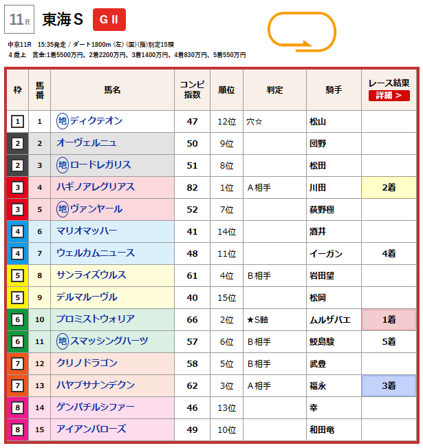 2つの順位の指数値を確認することで、参加するレースが簡単に分かる仕組みになっています。