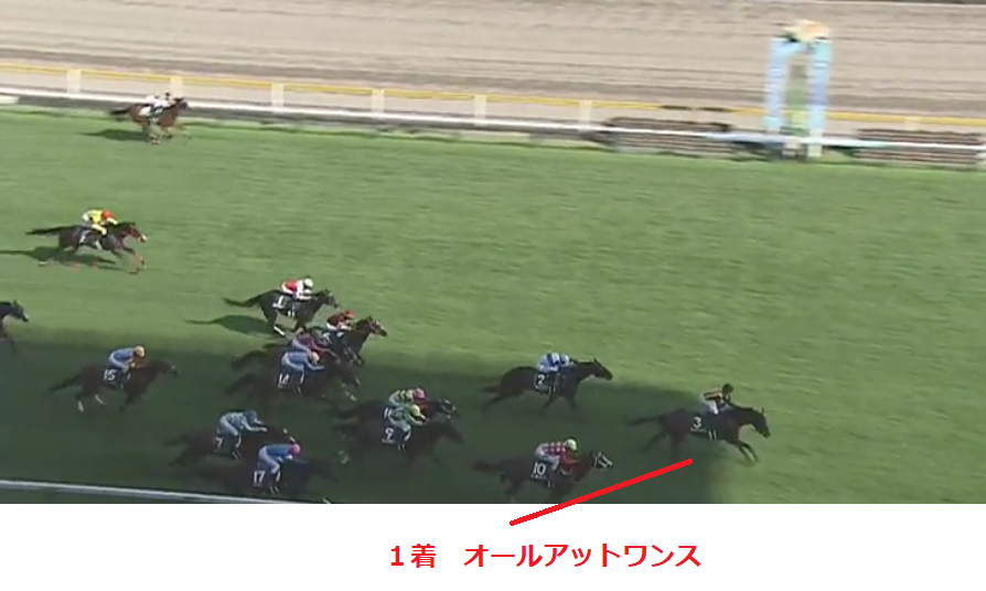 △の⑩トキメキが2着、△の②ロードベイリーフが3着に入りました。
