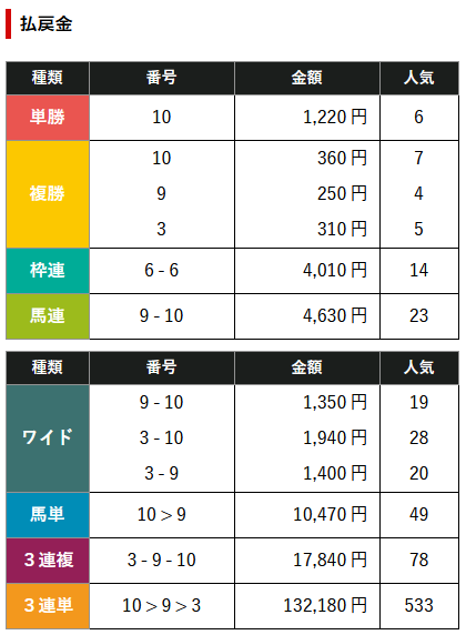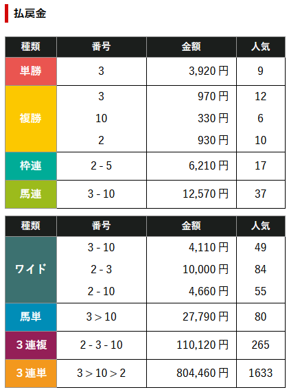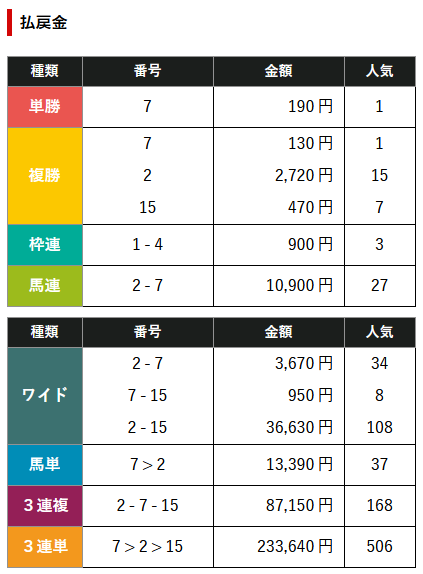 馬連は万馬券ですし、3連複、3連単も高配当になりましたね。